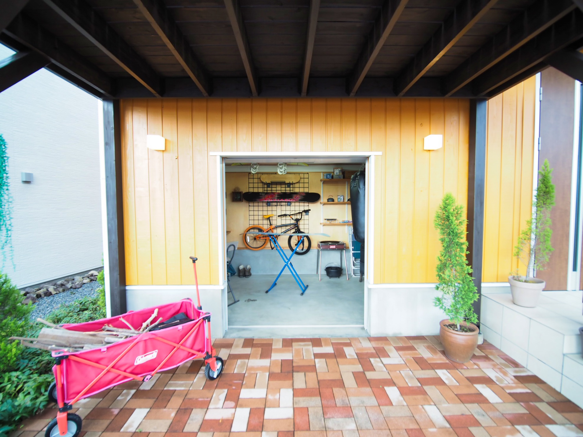 バイクやアウトドア用品、趣味に活躍する土間収納ガレージ