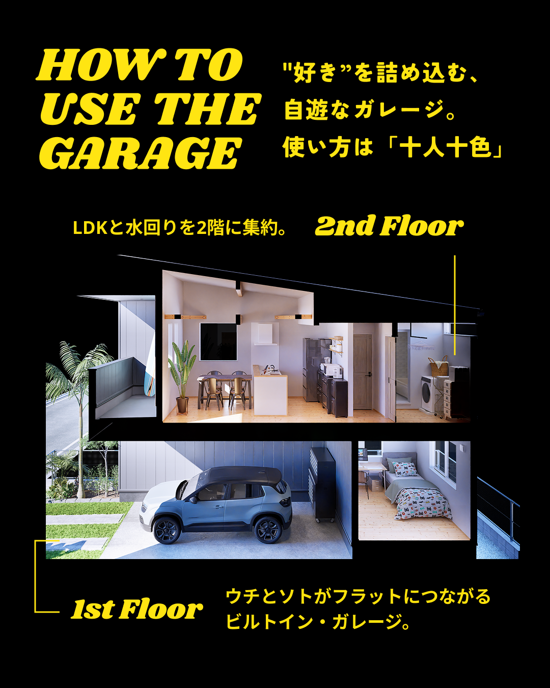 遊びは1階・暮らしには2階 <BOOOTS-GARAGE(ブーツ・ガレージ)>